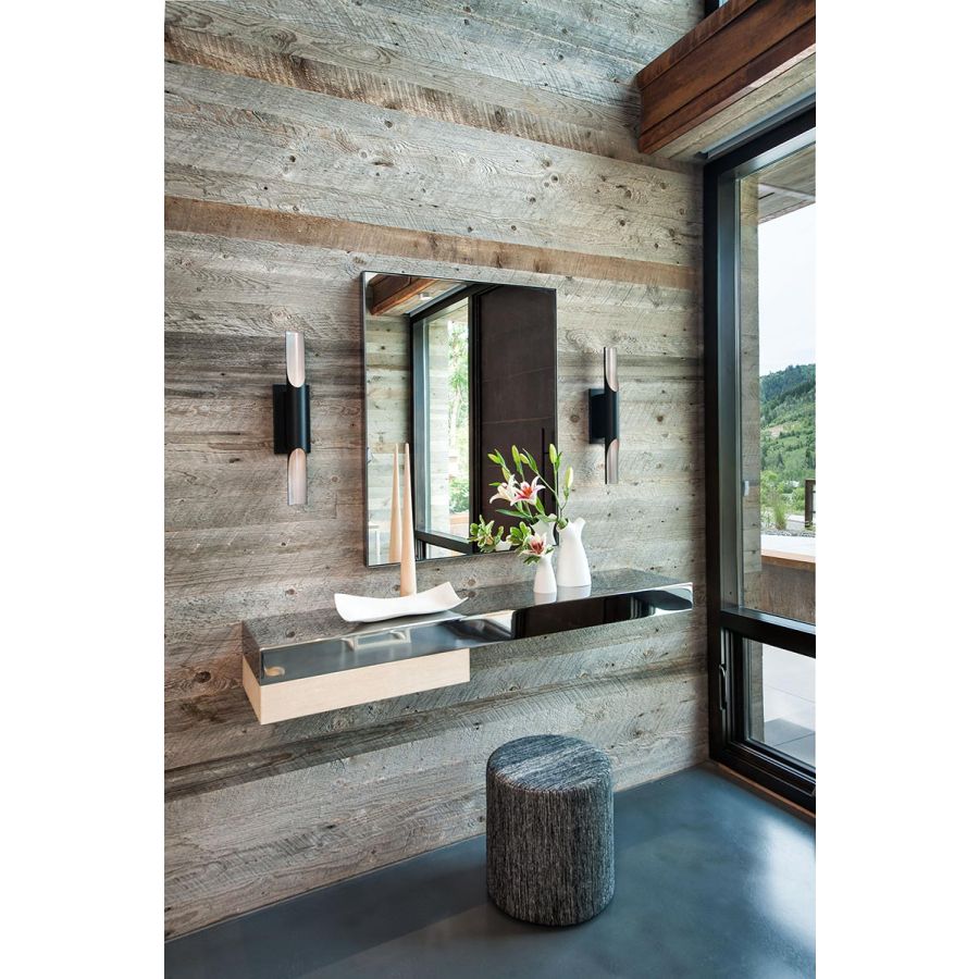 Inspired by neo-modernist fixtures of the French Art Deco period, Halfpipe provides a beautiful LED illumination that washes light up and down the wall. ADA compliant for use in commercial or hospitality spaces. Available in two powder coat options and two hand-applied gold leaf options.