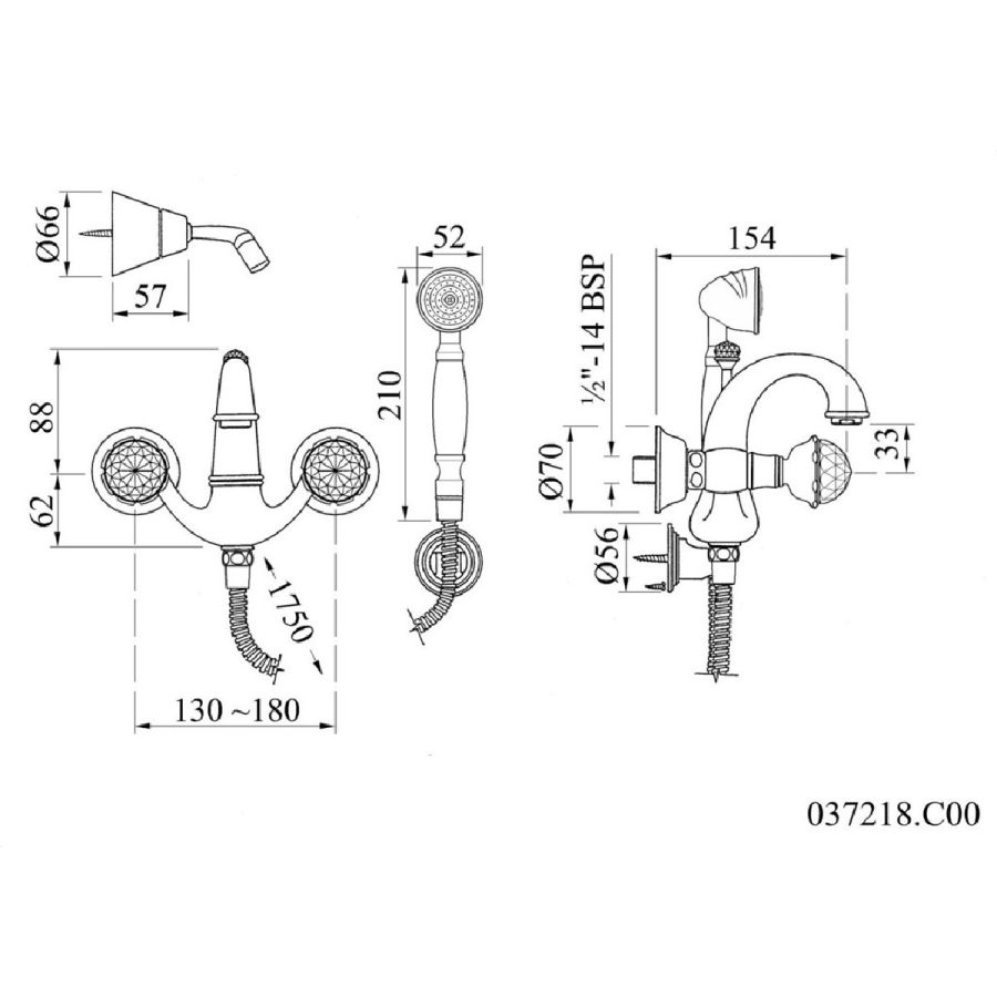 Bronces Mestre / Bath-Shower Fittings / Bath shower set with Swarovski crystal 037218.C00.50