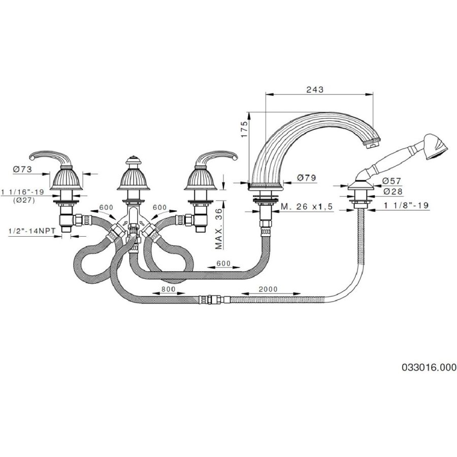 Bronces Mestre / Bath-Shower Fittings / Five holes bath set 051416.B00.50