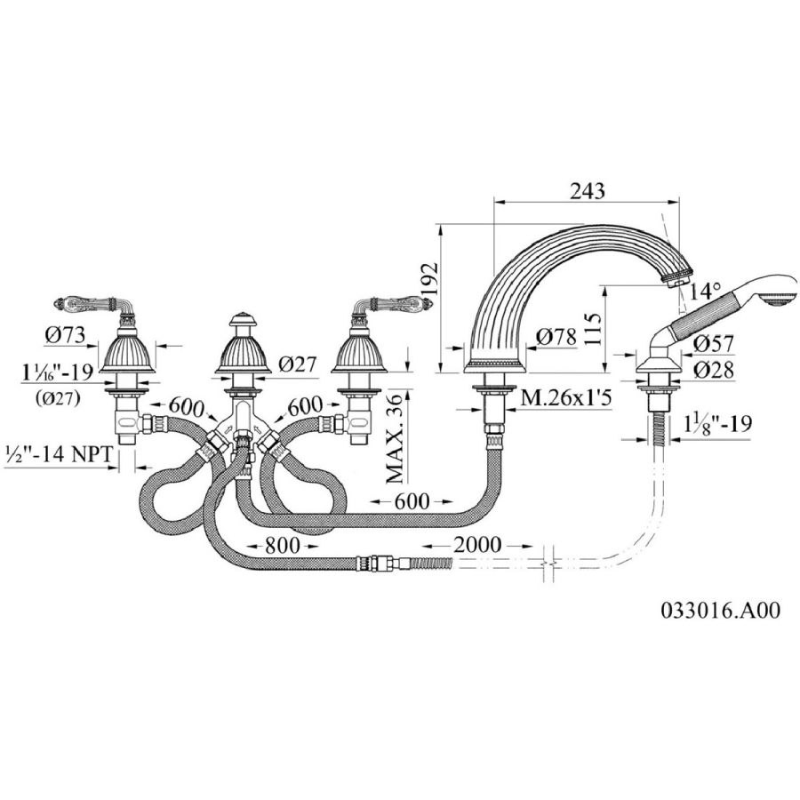 Bronces Mestre / Bath-Shower Fittings / Five holes bath set 033016.A00.00
