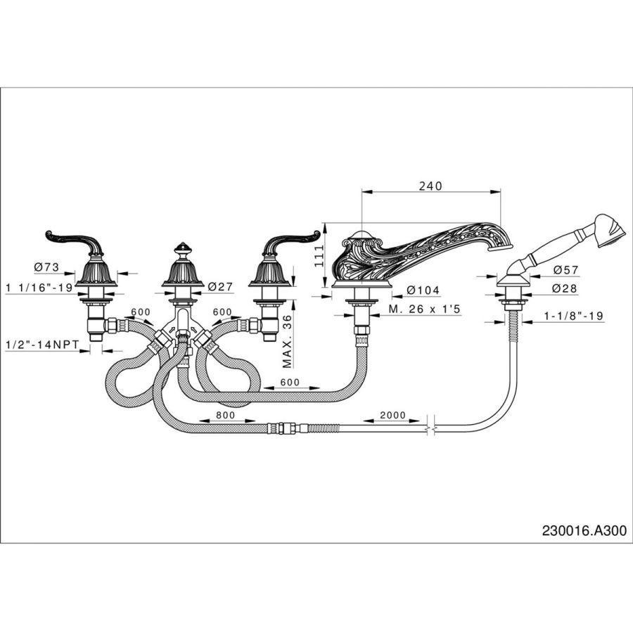 Bronces Mestre / Bath-Shower Fittings / Five holes bath set 230016.A300.16