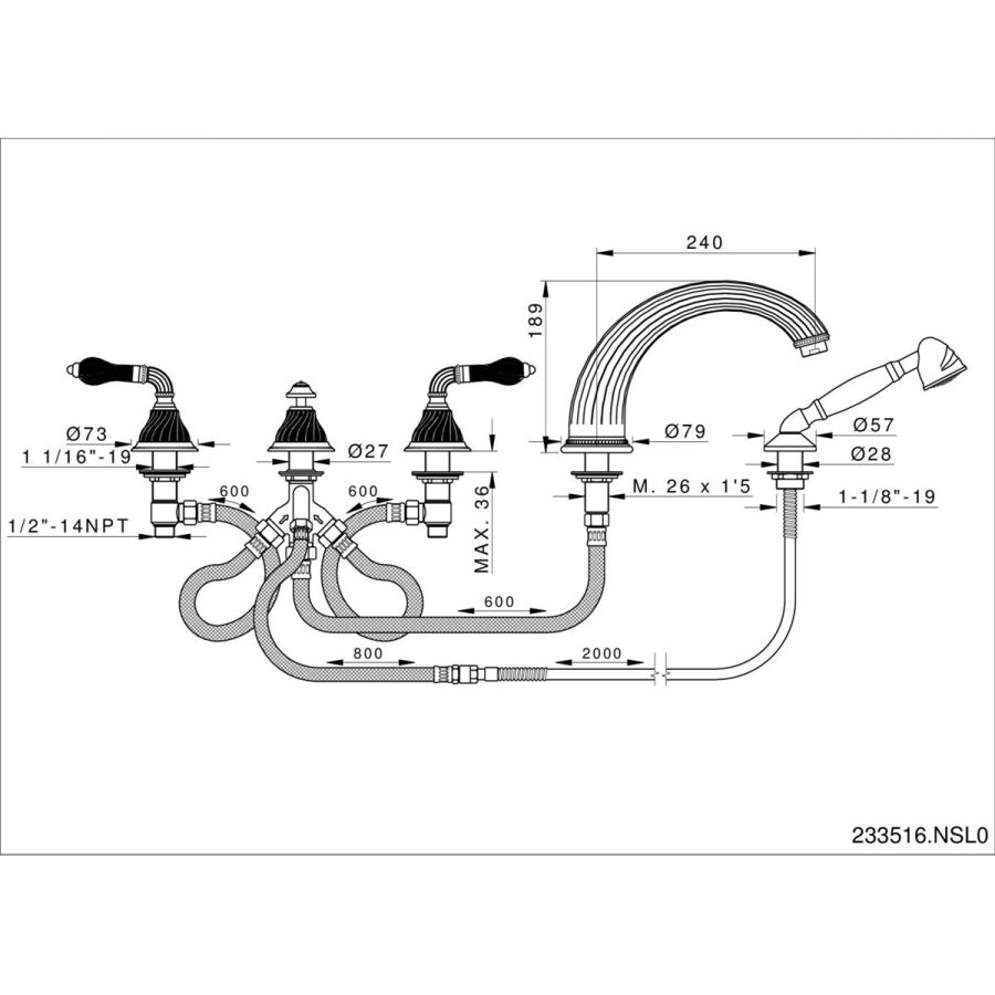 - Bronces Mestre / Bath-Shower Fittings / Five holes bath set with black porcelain twisted 233516.NSL0.50