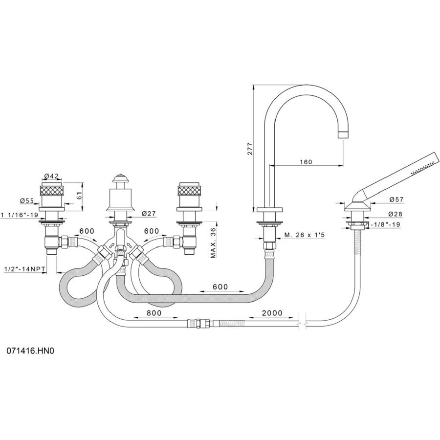 Bronces Mestre / Bath-Shower Fittings / Five holes bath set 051416.B00.50