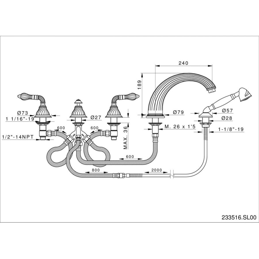 Bronces Mestre / Bath-Shower Fittings / Five holes bath set 051416.B00.50