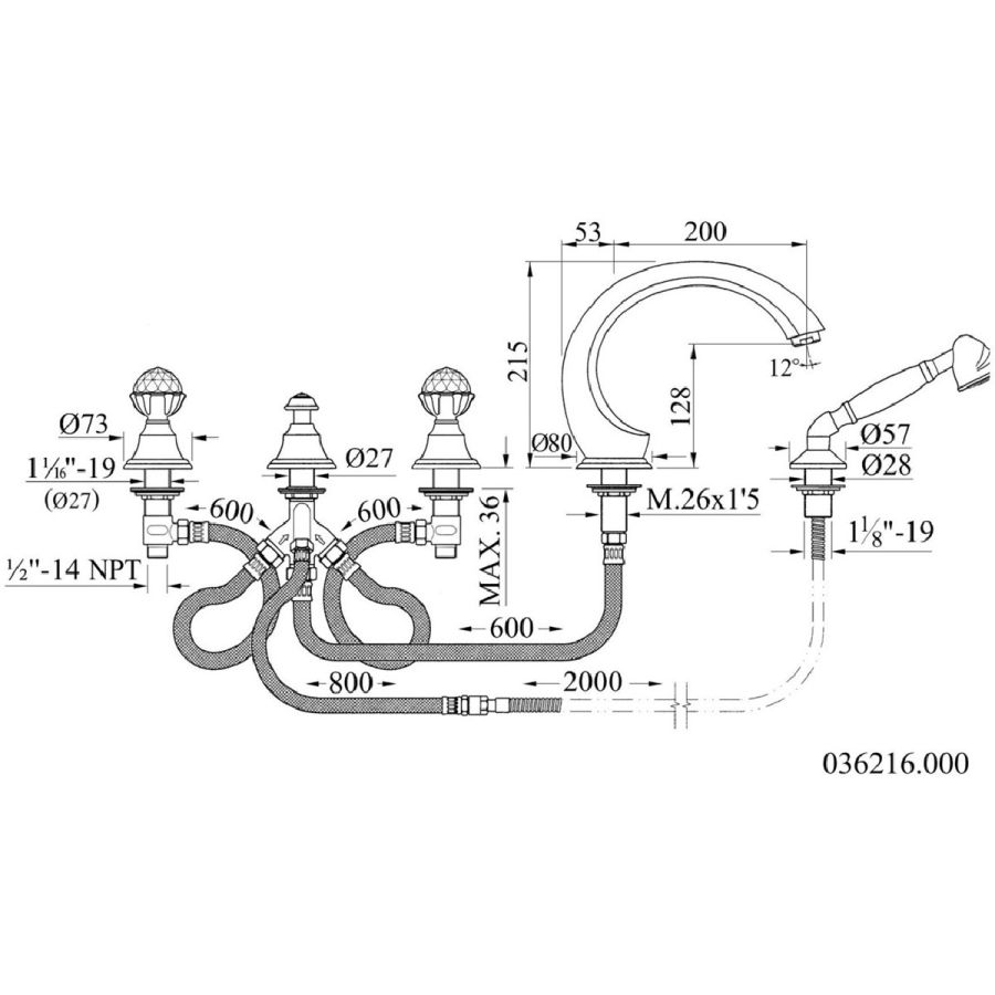 Bronces Mestre / Bath-Shower Fittings / Five holes bath set 073016.000.00