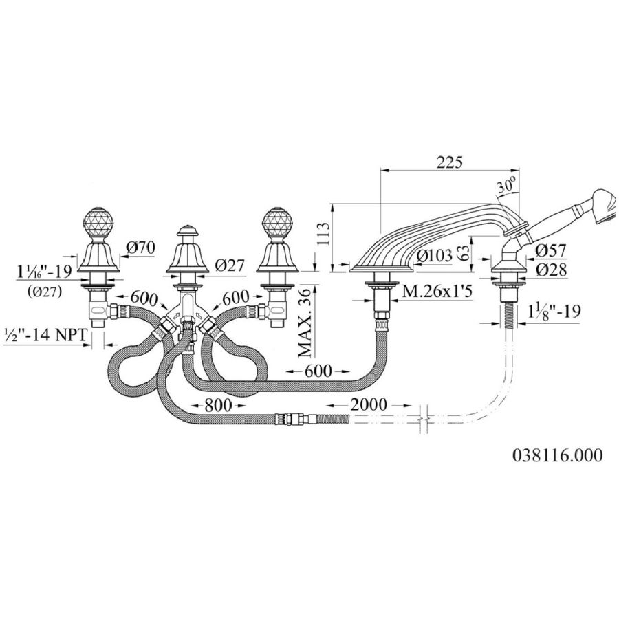 Bronces Mestre / Bath-Shower Fittings / Five holes bath set 038016.K00.50