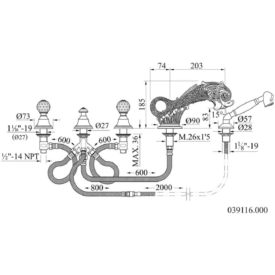 Bronces Mestre / Bath-Shower Fittings / Five holes bath set 051416.B00.50