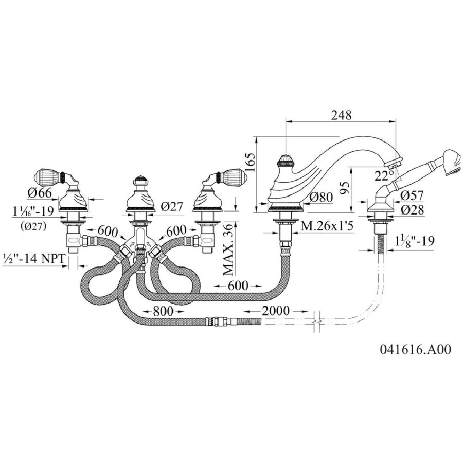 Bronces Mestre / Bath-Shower Fittings / Five holes bath set 051416.B00.50
