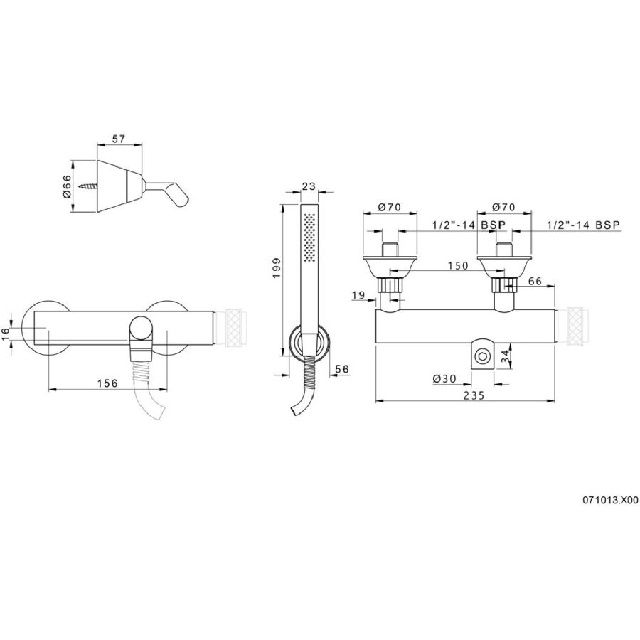 Bronces Mestre / Bath-Shower Fittings / Single lever shower mixer without lever 071013.X00.50
