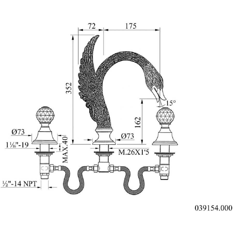 Bronces Mestre / Bath-Shower Fittings / Three holes bath set with Swarovski crystal Swan series 039154.000.00