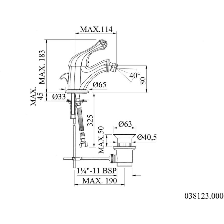 Bronces Mestre / Bidet Fittings / One hole bidet mixer 038025.K00.50
