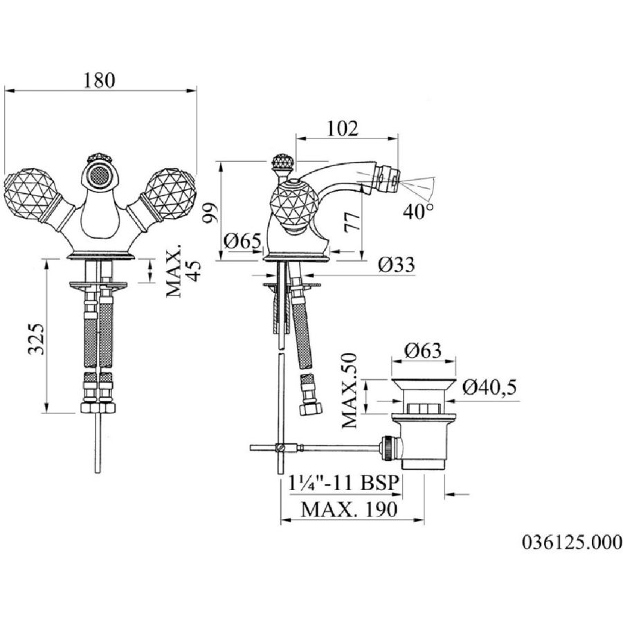 Bronces Mestre / Bidet Fittings / One hole bidet mixer with Swarovski crystal 036125.000.00