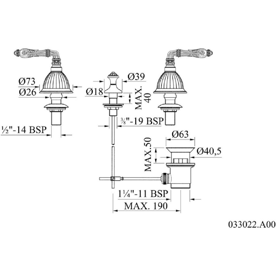 Bronces Mestre / Washbasin Fittings / Three holes basin set 033001.A00.00