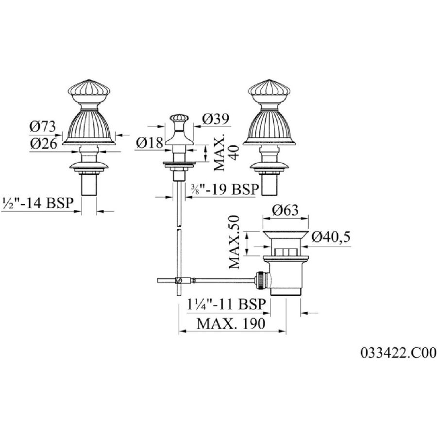 Bronces Mestre / Bidet Fittings / Three holes bidet set 033422.C00.62