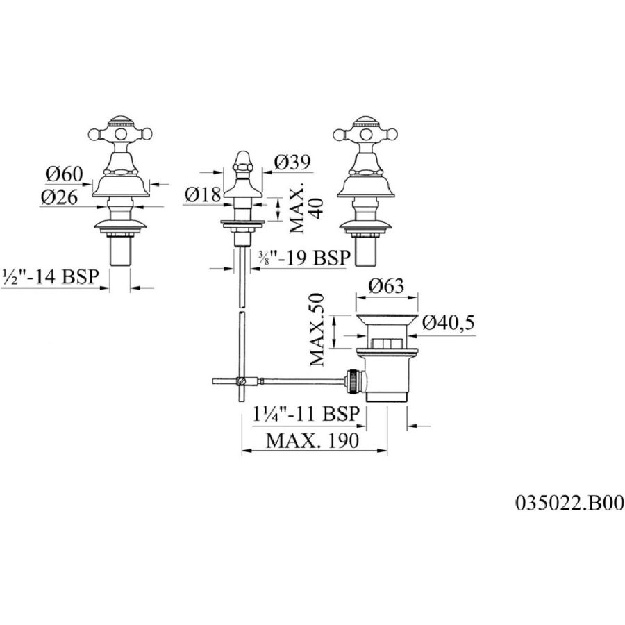 - Bronces Mestre / Bidet Fittings / Three holes bidet set 035022.B00.50
