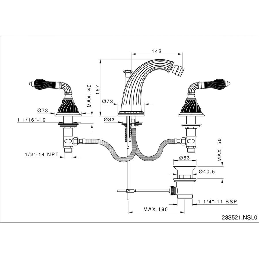 Bronces Mestre / Bidet Fittings / Three holes bidet set with black porcelain twisted 233521.NSL0.50