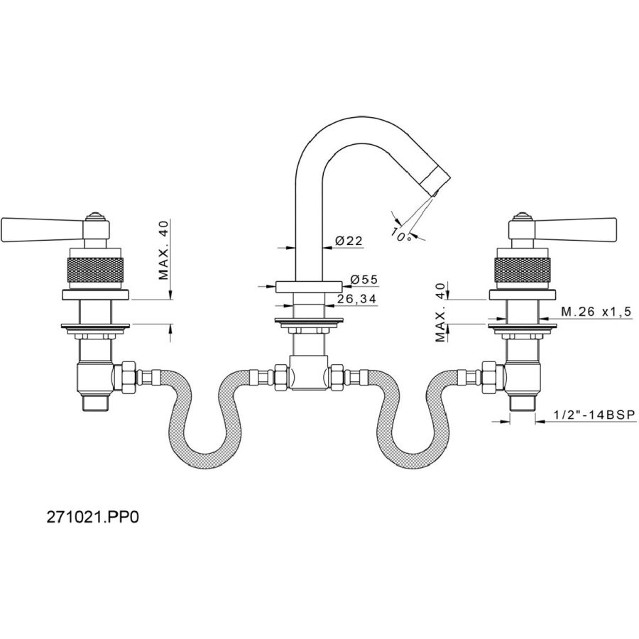Bronces Mestre / Bidet Fittings / Three holes bidet set 033021.APT.50