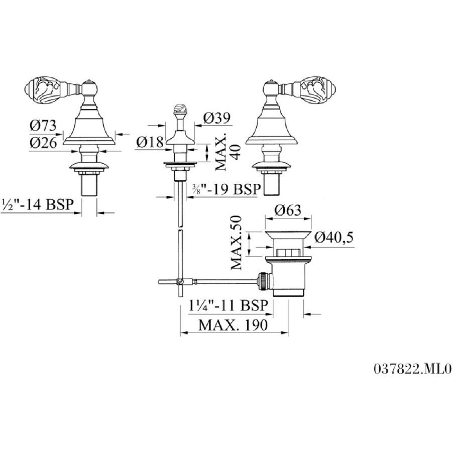 Bronces Mestre / Bidet Fittings / Three holes bidet set 033022.A00.62