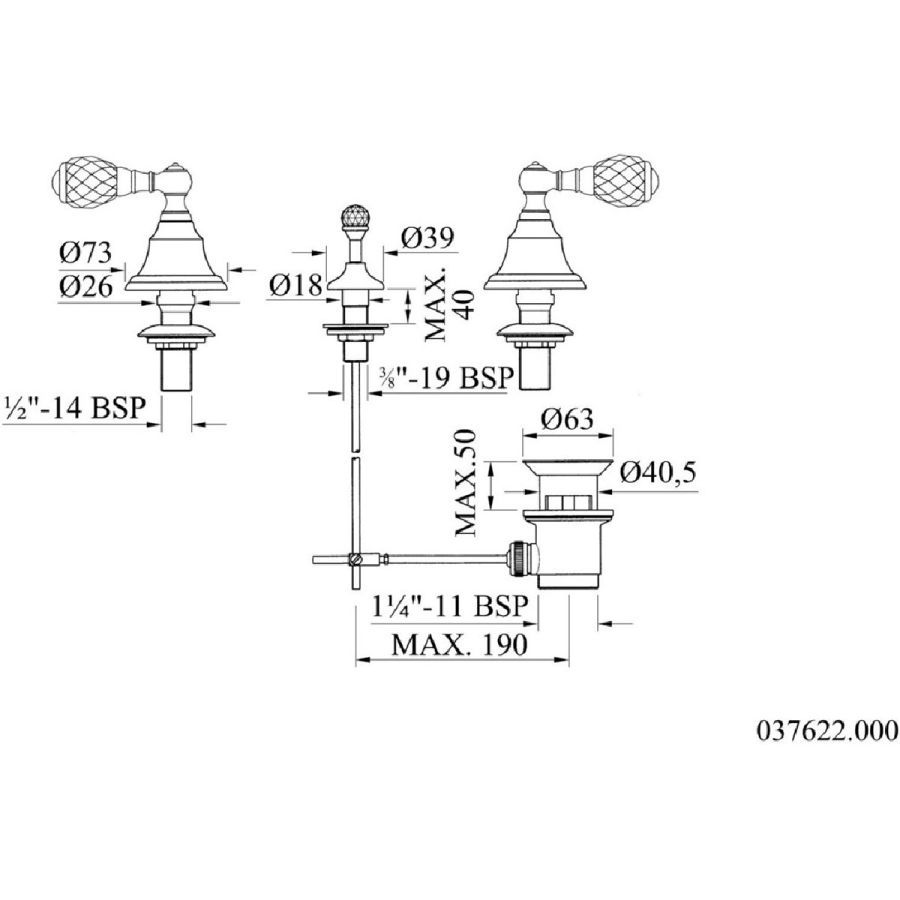 Bronces Mestre / Washbasin Fittings / Three holes basin set 037401.000.50