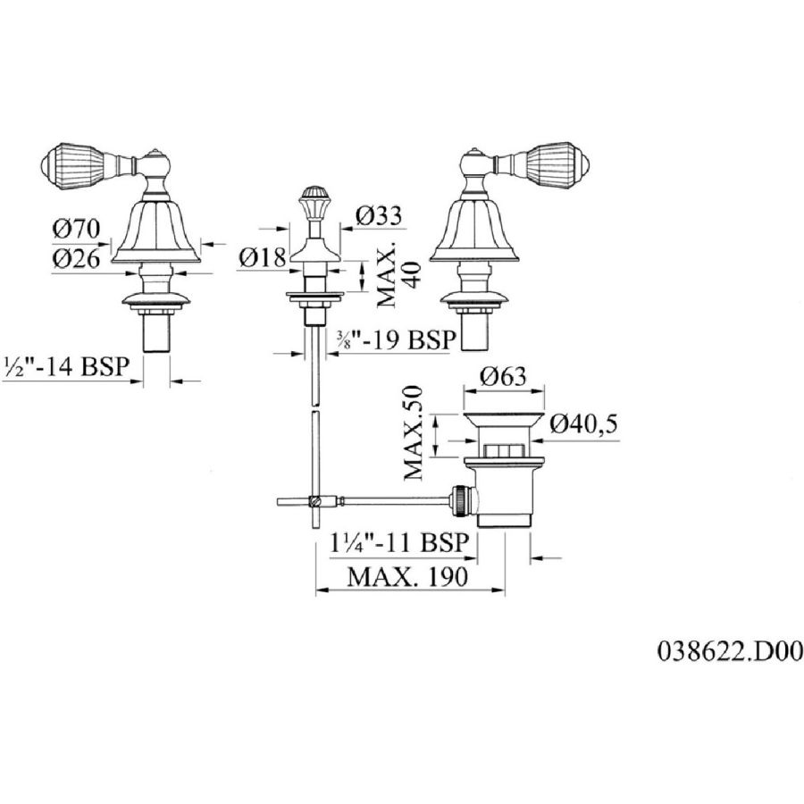 Bronces Mestre / Bidet Fittings / Three holes bidet set 033022.A00.62