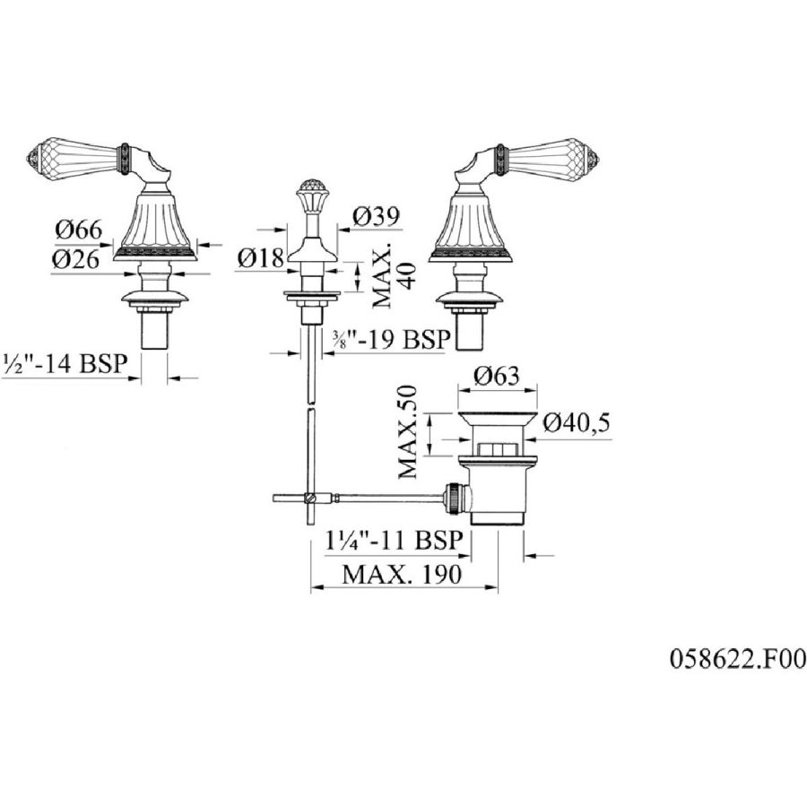 Bronces Mestre / Bidet Fittings / Three holes bidet set 033022.A00.62