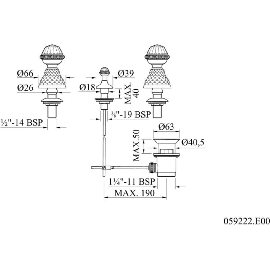 Bronces Mestre / Bidet Fittings / Three holes bidet set 059022.000.50