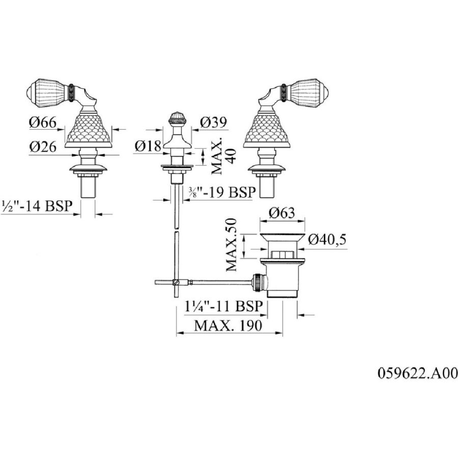 Bronces Mestre / Washbasin Fittings / Three holes basin set 059401.A00.71