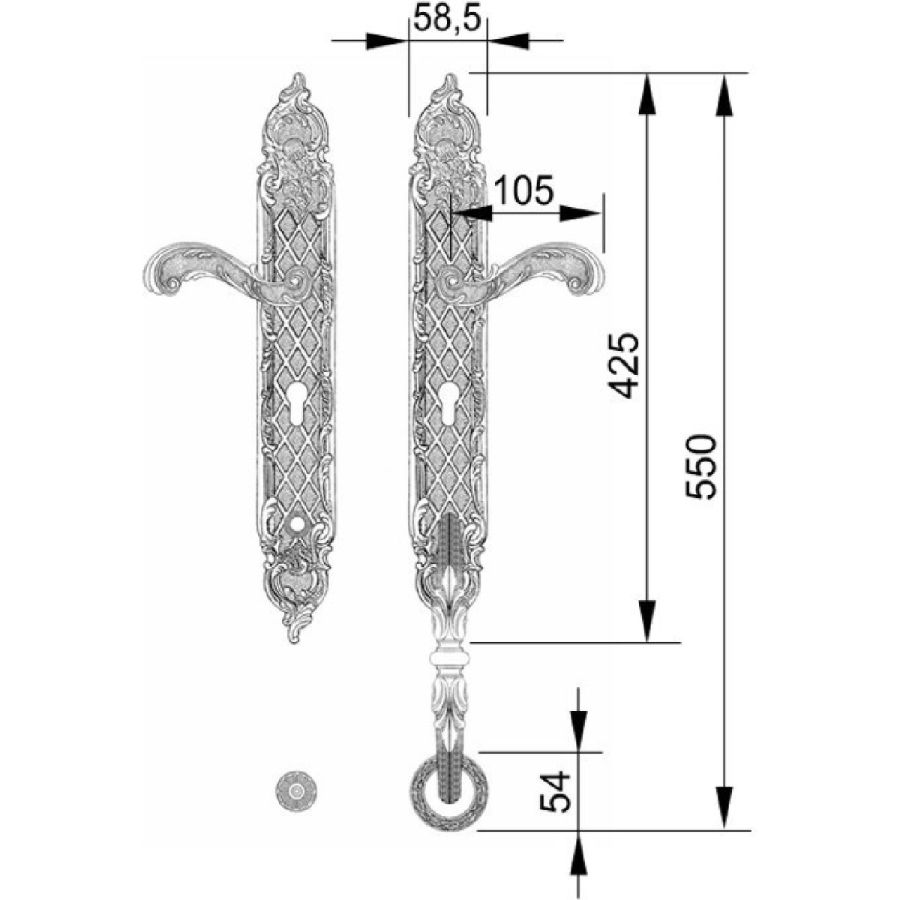 - Bronces Mestre / Door Handles / Clasica set with keyhole europrofile 85mm 0J1605.85Y.71