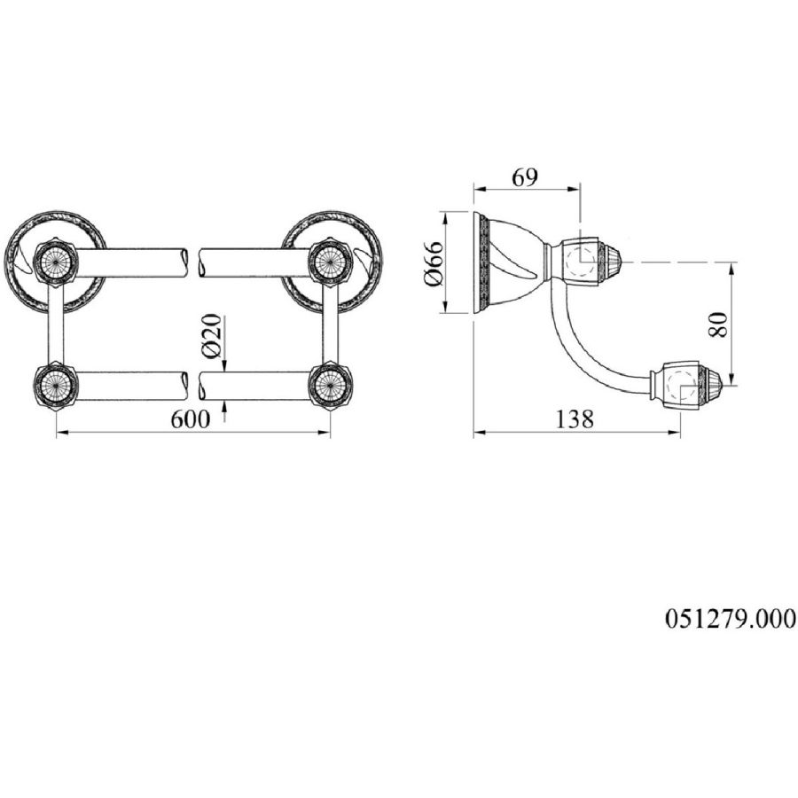 - Bronces Mestre / Towel Holders / Double towel rail 600mm with Swarovski crystal 051279.000.01
