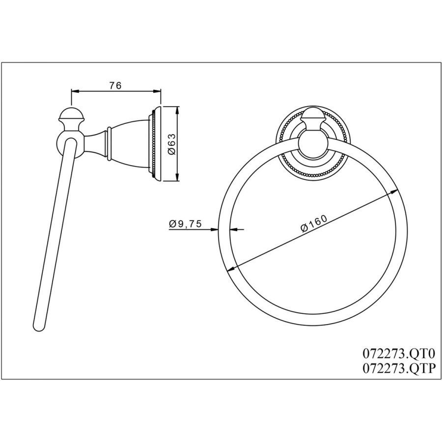 Bronces Mestre / Towel Holders / Towel ring 165mm with quartz stone 072273.QT0.50