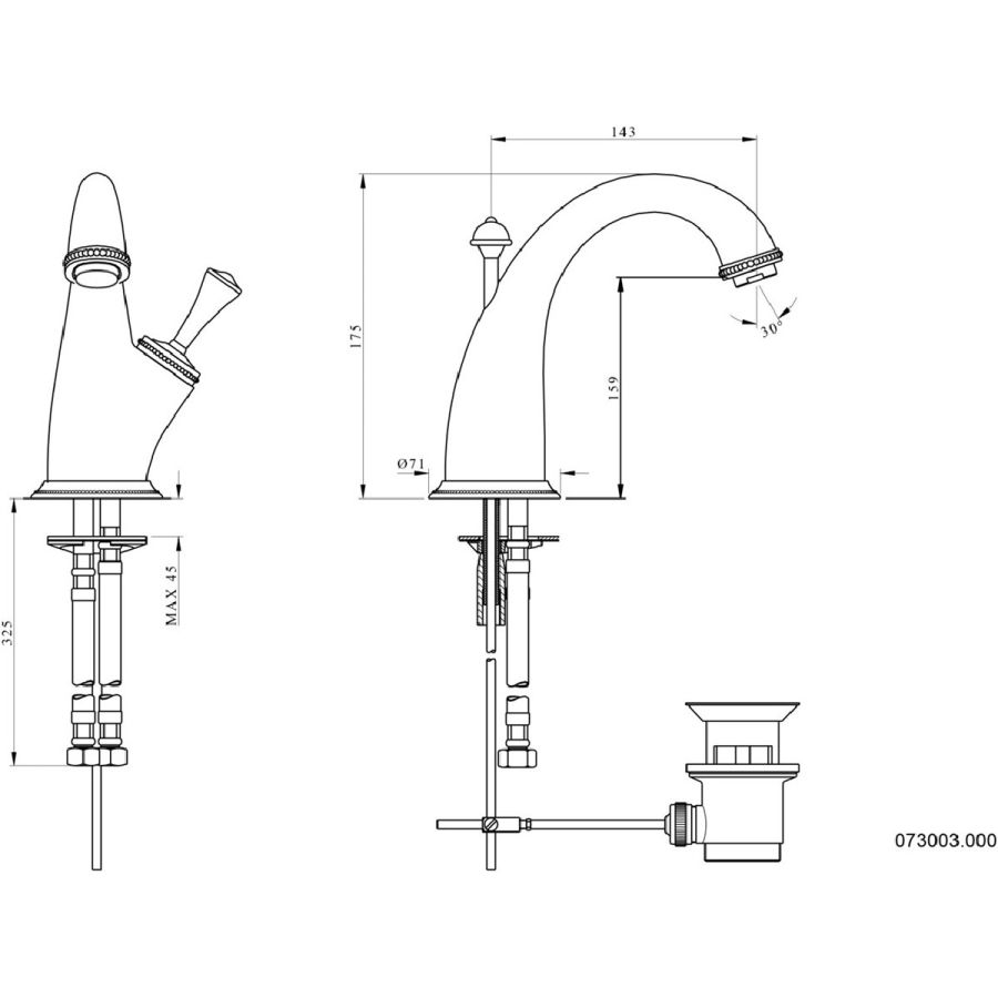 Bronces Mestre / Washbasin Fittings / Three holes basin set 073001.000.00