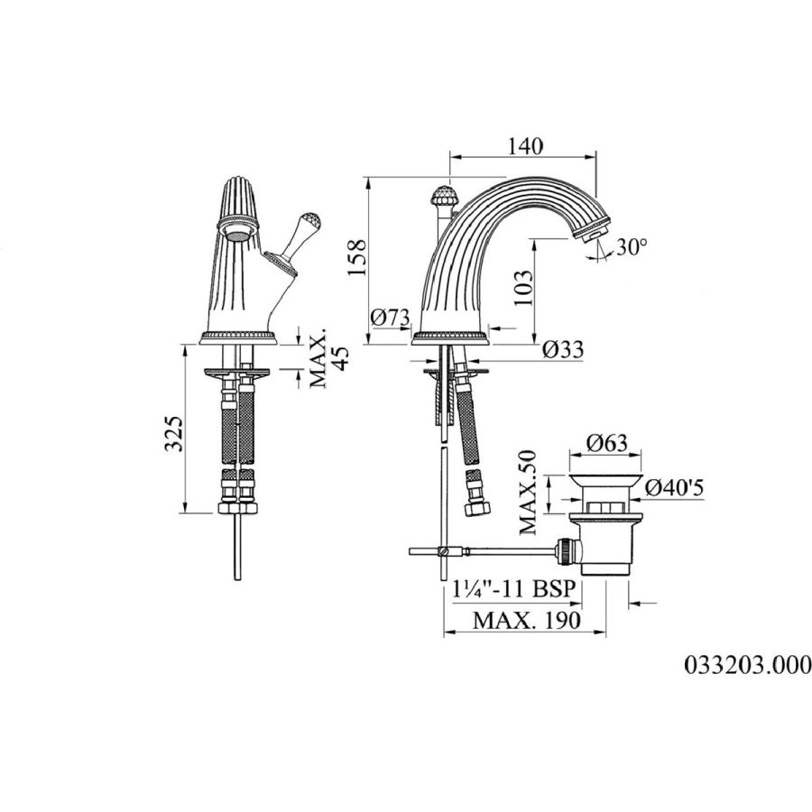 Bronces Mestre / Washbasin Fittings / Three holes basin set 033001.A00.00