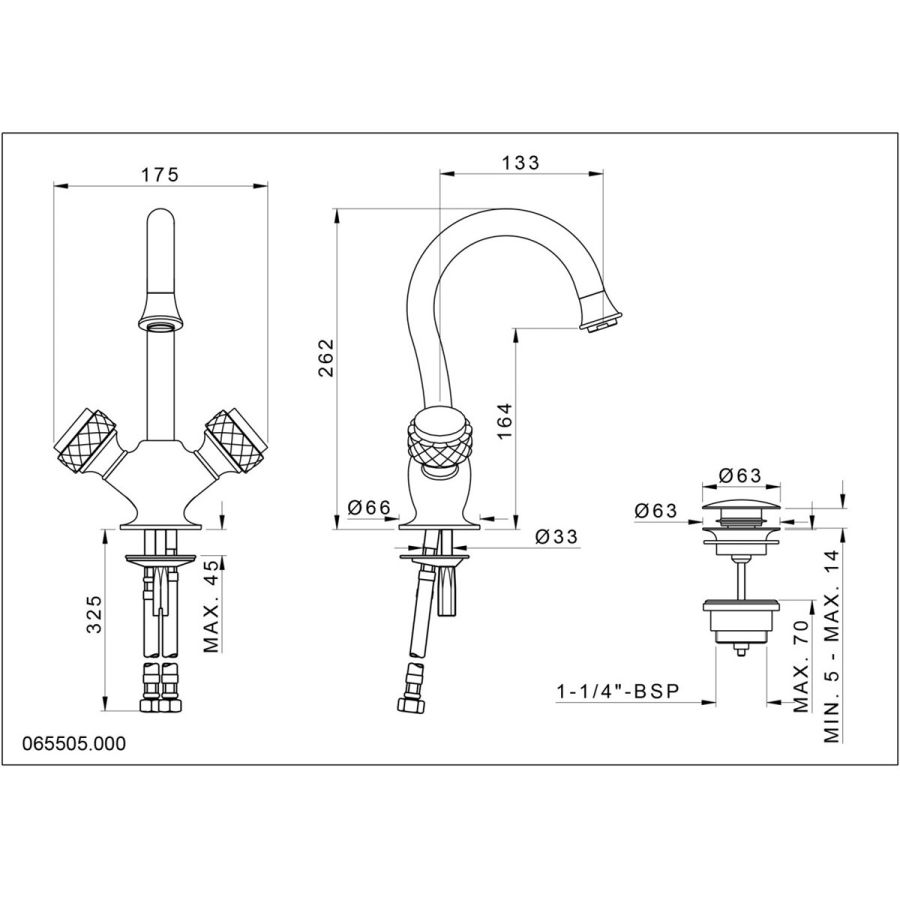 Bronces Mestre / Washbasin Fittings / Three holes basin set 073001.000.00