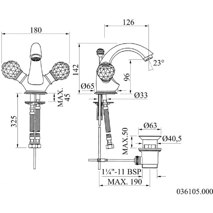Bronces Mestre / Washbasin Fittings / Three holes basin set with Swarovski 271001.PH0.50