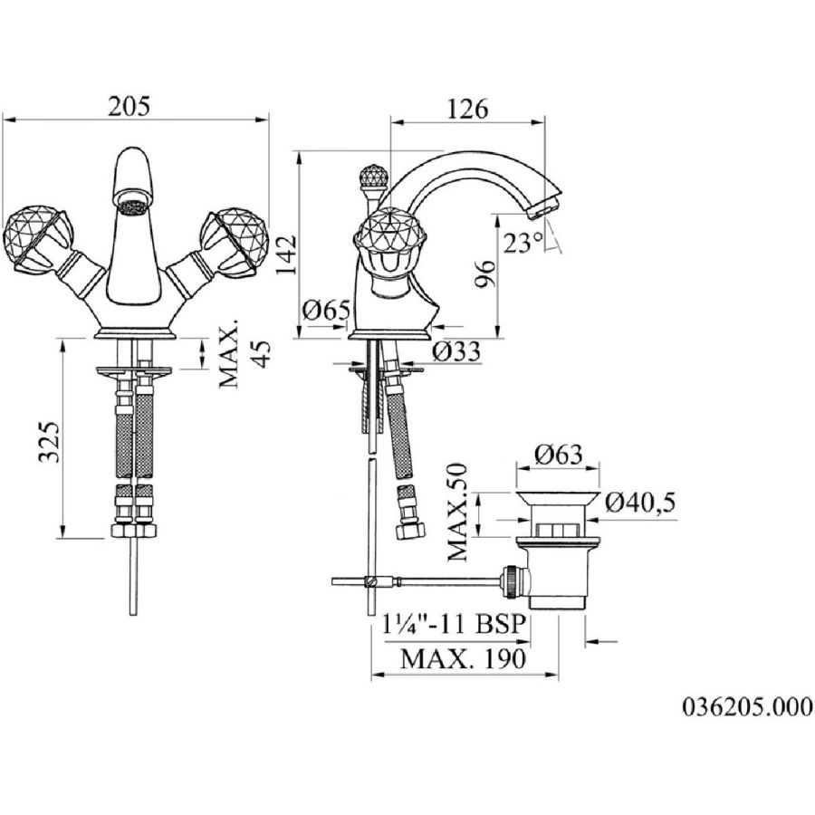 Bronces Mestre / Washbasin Fittings / Three holes basin set with Swarovski 271001.PH0.50