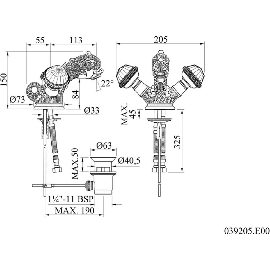 Bronces Mestre / Washbasin Fittings / Three holes basin set 039002.E00.50