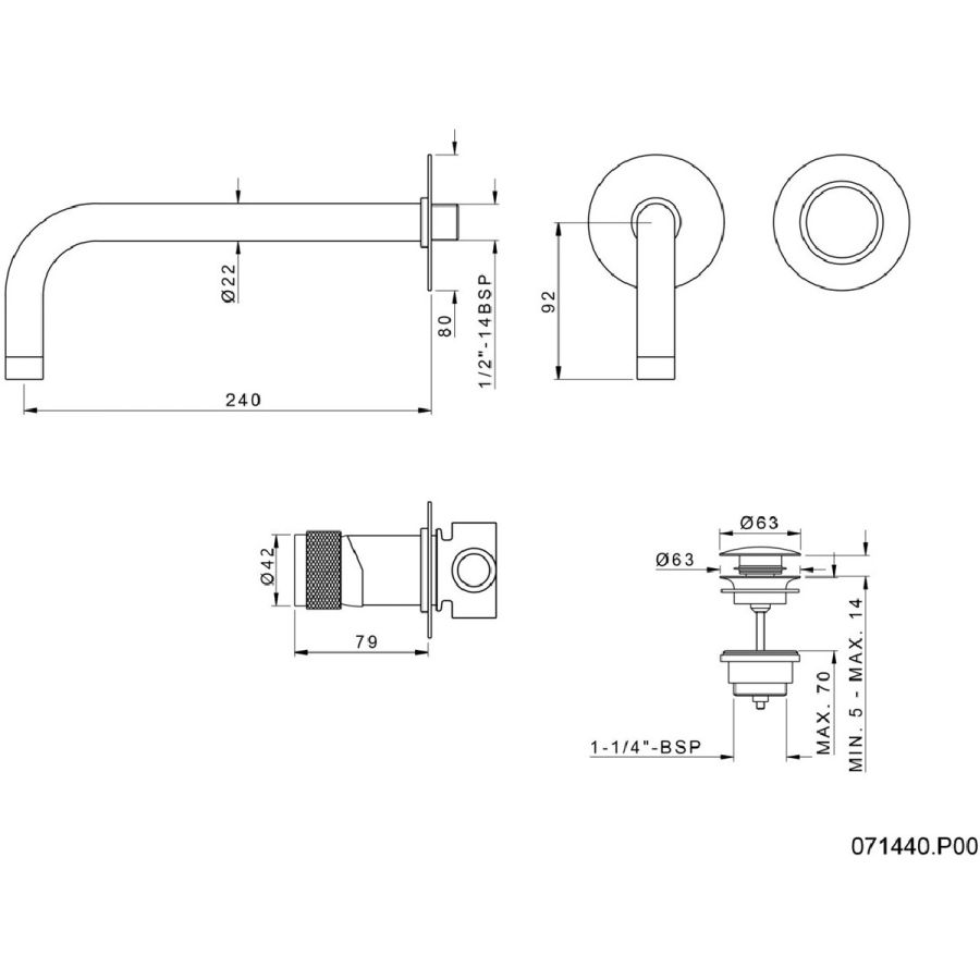 Bronces Mestre / Washbasin Fittings / Single wall spout 035015.000.50