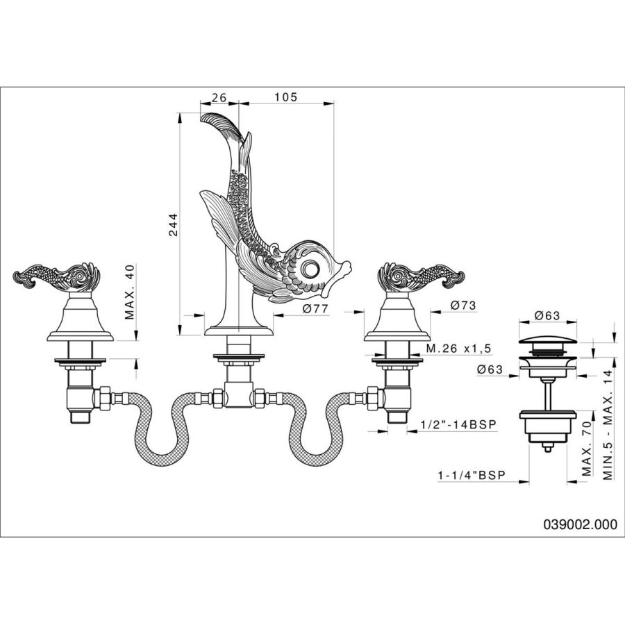 Bronces Mestre / Washbasin Fittings / Three holes basin set 039002.E00.50
