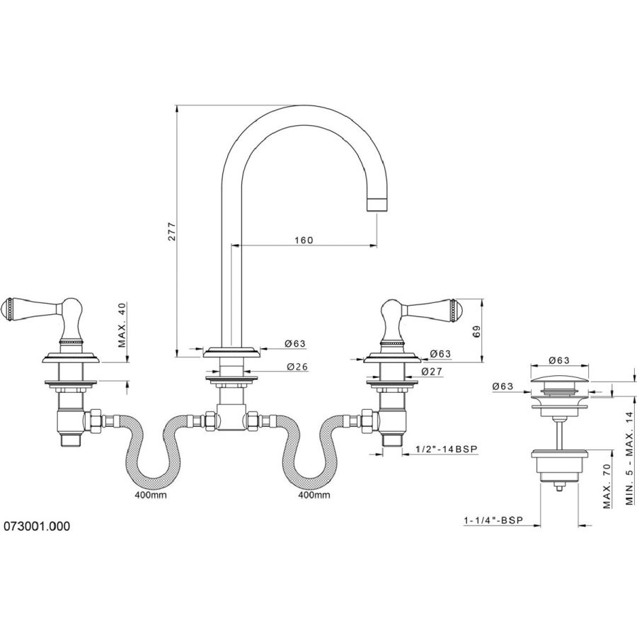 Bronces Mestre / Washbasin Fittings / Three holes basin set 073001.000.00
