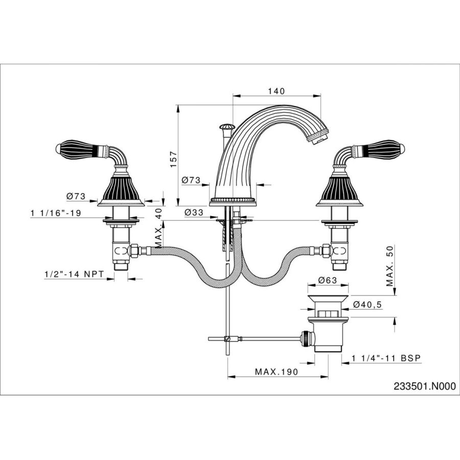 Bronces Mestre / Washbasin Fittings / Three holes basin set 033001.000.50