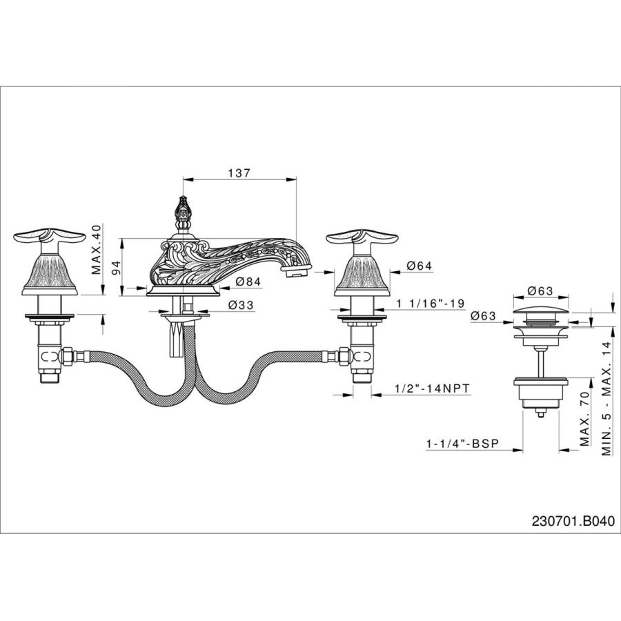 Bronces Mestre / Washbasin Fittings / Three holes basin set with click-clack water waste 230701.B040.50