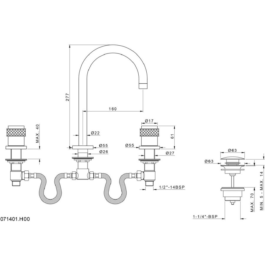 Bronces Mestre / Washbasin Fittings / Three holes basin set 072001.000.50