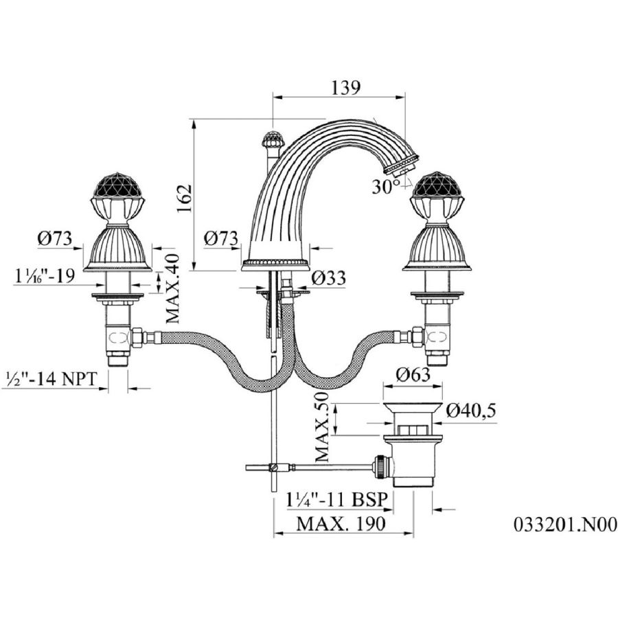 Bronces Mestre / Washbasin Fittings / Three holes basin set 033001.A00.00