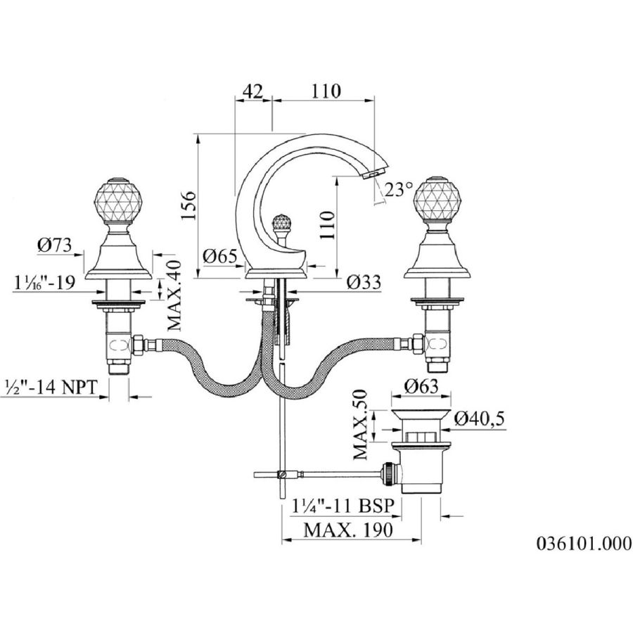 - Bronces Mestre / Washbasin Fittings / Three holes basin set with Swarovski crystal 036101.000.00