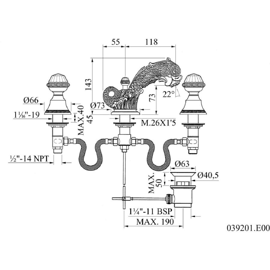 Bronces Mestre / Washbasin Fittings / Three holes basin set 039002.E00.50
