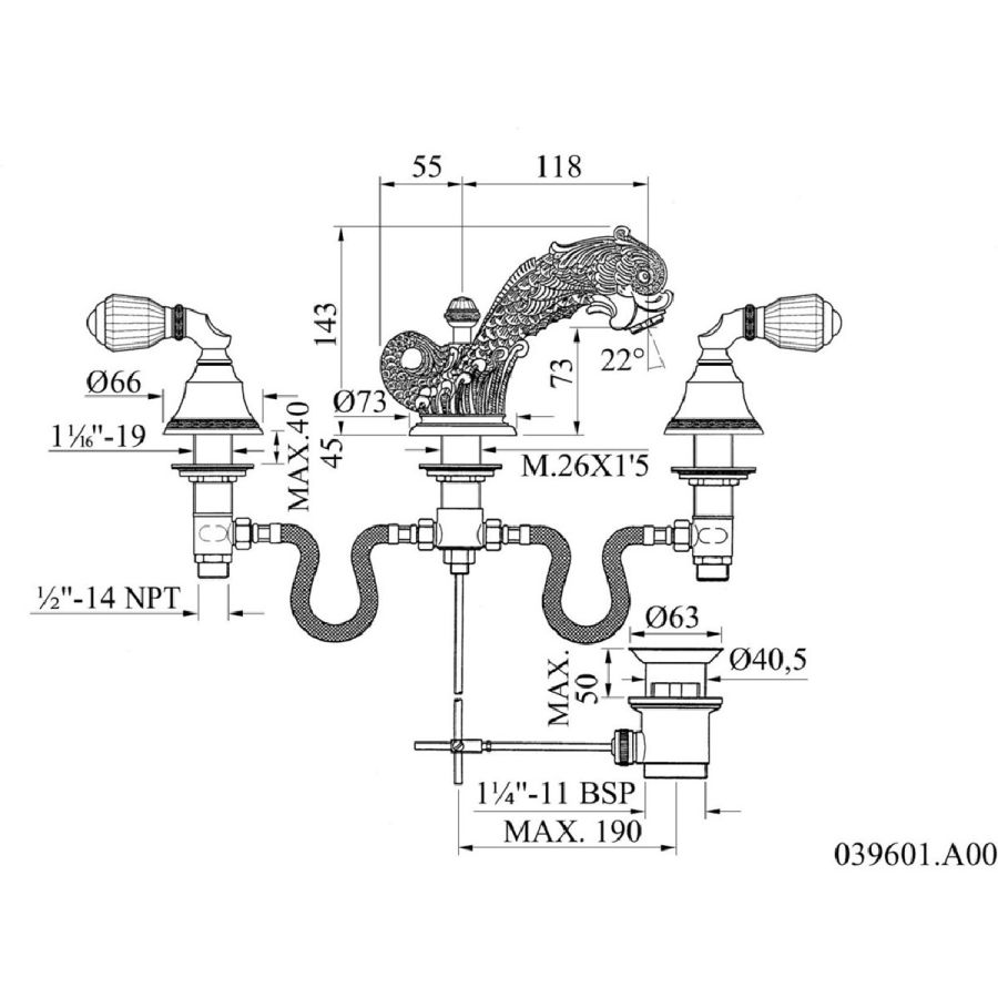Bronces Mestre / Washbasin Fittings / Three holes basin set 039002.E00.50
