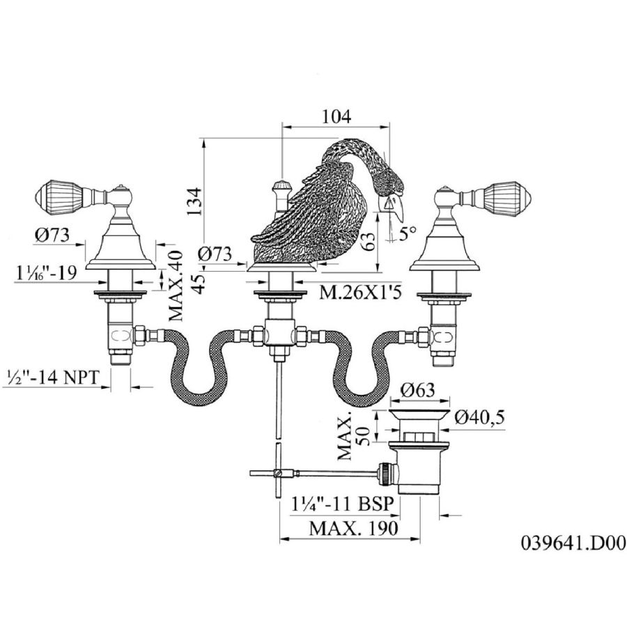Bronces Mestre / Washbasin Fittings / Three holes basin set 039451.000.71