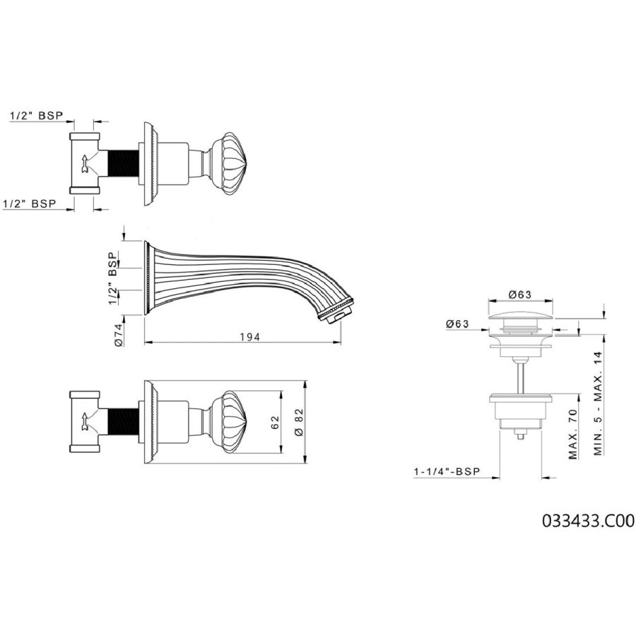 Bronces Mestre / Washbasin Fittings / Three holes wall basin set 033433.C00.50