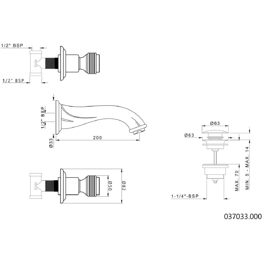Bronces Mestre / Washbasin Fittings / Three holes wall basin set 037033.000.50