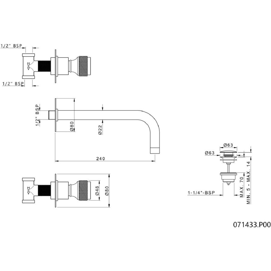 Bronces Mestre / Washbasin Fittings / Three holes wall basin set 033433.C00.50